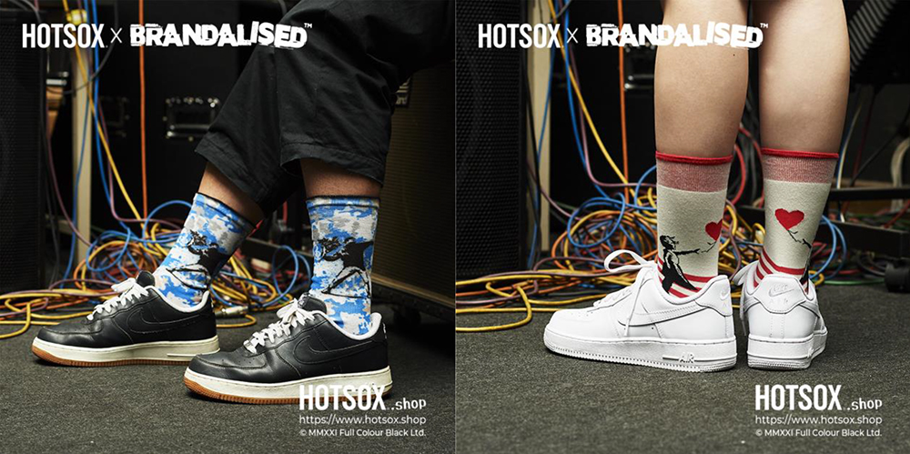 自社ブランド、HOTSOXのコラボ企画で、国内外の有名画家をプリントした「HOTSOX-アーティストシリーズ」に続き、今回は匿名アーティスト・バンクシーのグラフィティ写真をプリントした「HOTSOX – Brandalised」シリーズを企画、4日間限定のポップアップショップを開催。